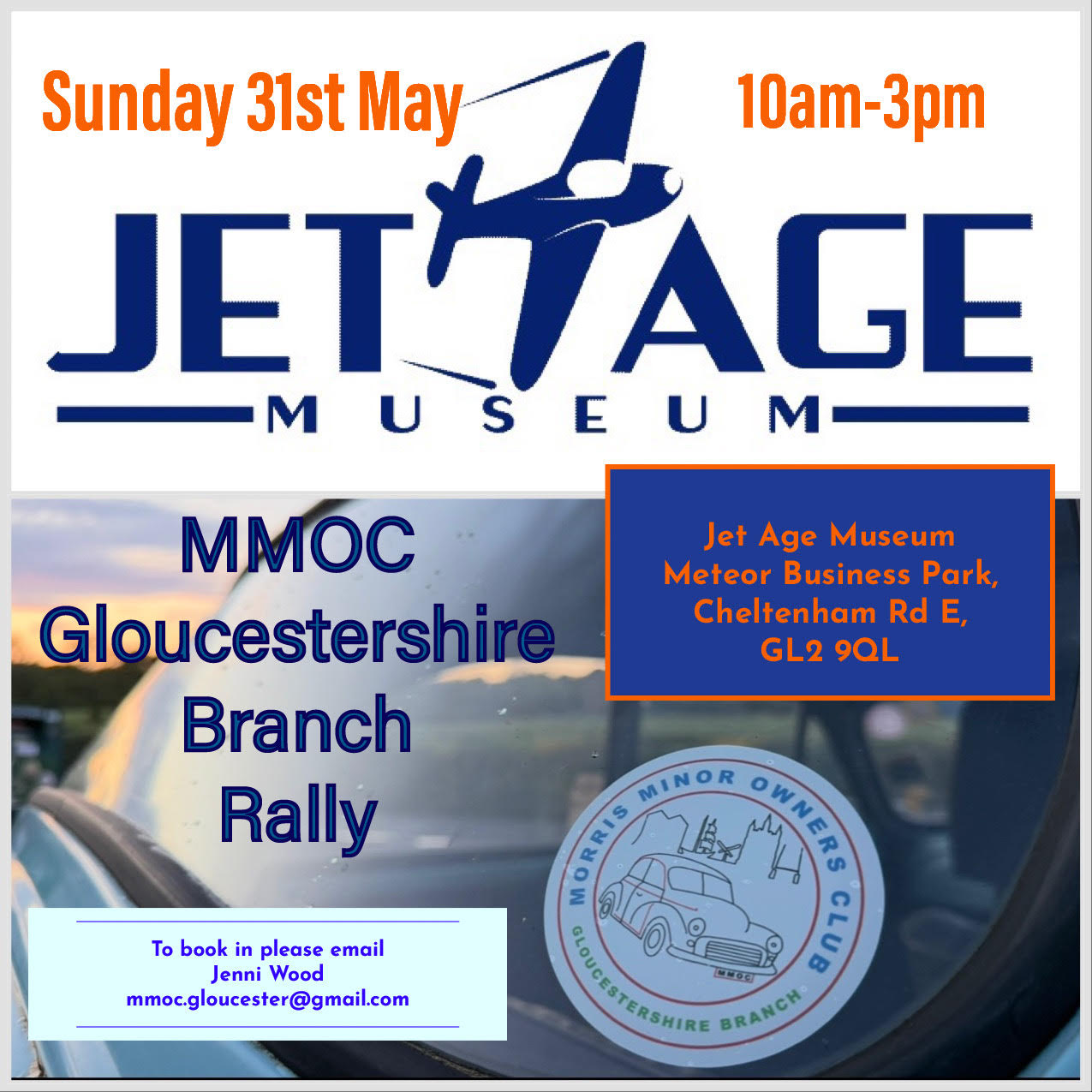 Sun 31 May: Gloucestershire Branch Rally at the Jet Age Museum. The museum is at the Meteor Business Park near Gloucestershire Airport (Staverton) in between Gloucester and Cheltenham so is easily accessed from our area. The Rally poster can be viewed here and the application form here. If you plan to go please tell Pam once you have registered. There will be the option to travel in convoy, meeting near Cirencester at about 8.30am arrangements will be confirmed nearer the time.